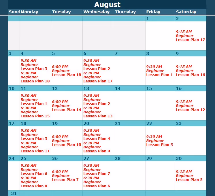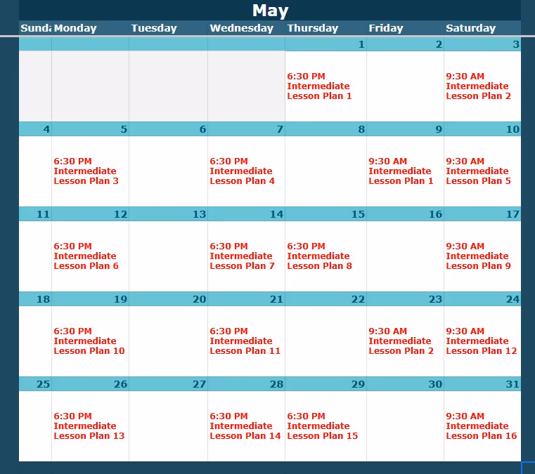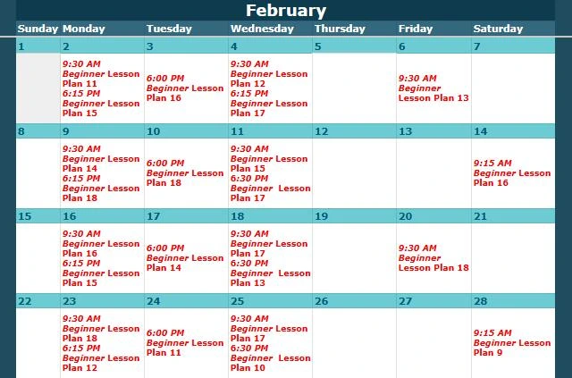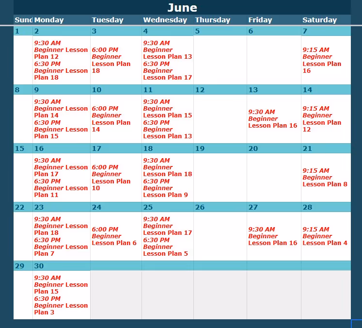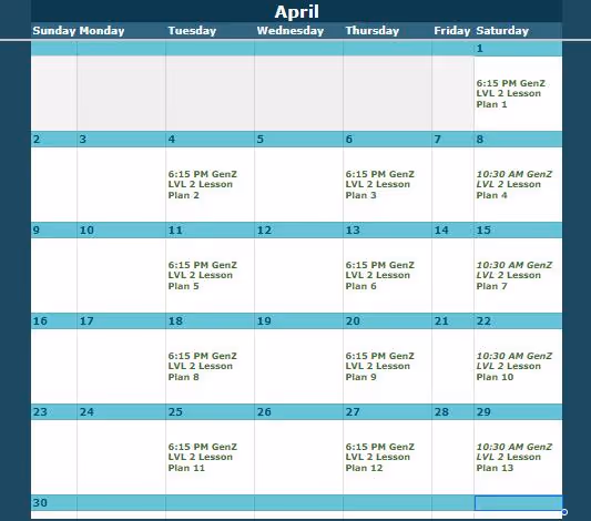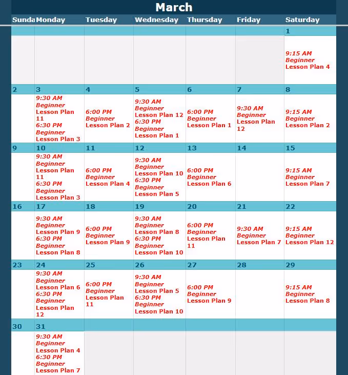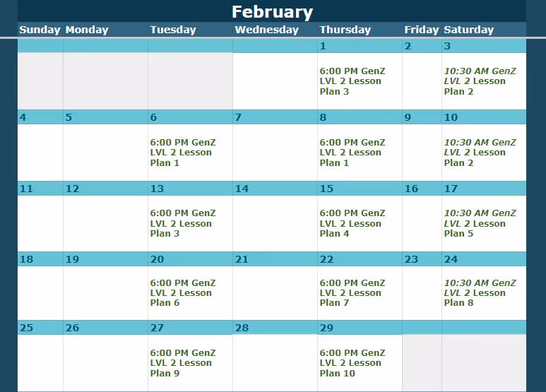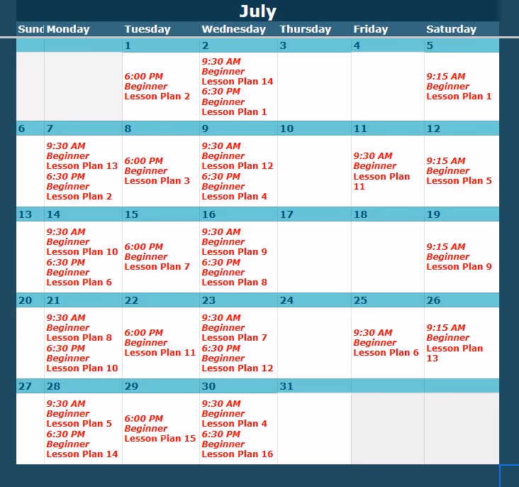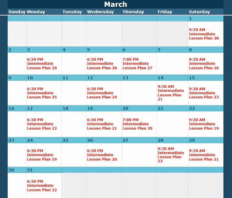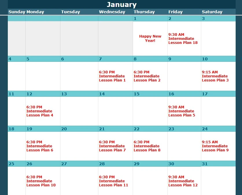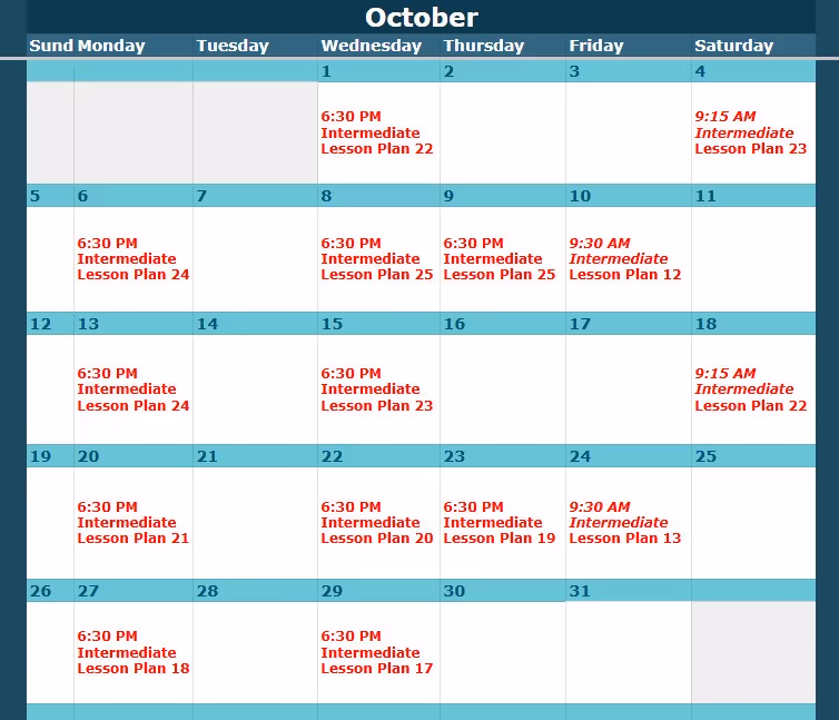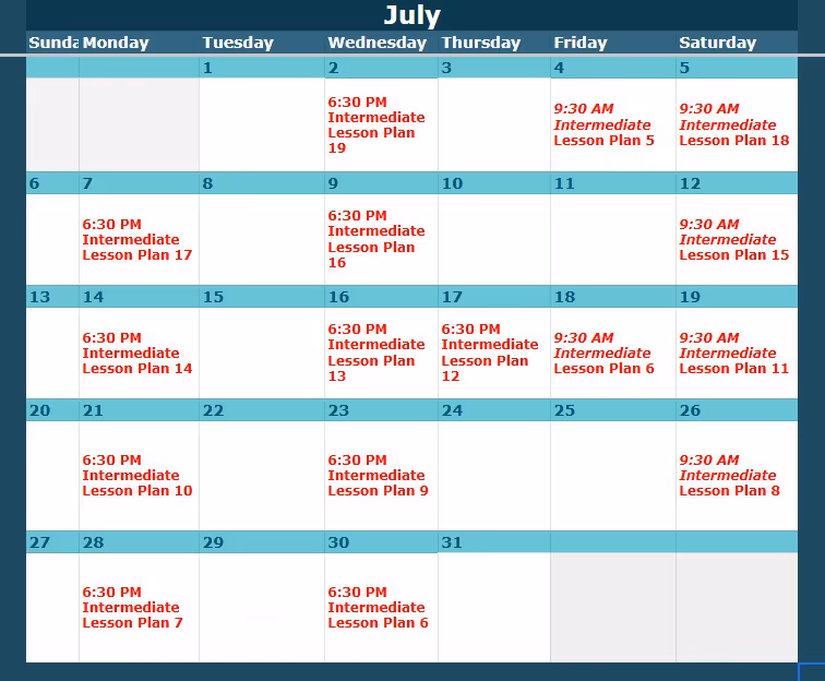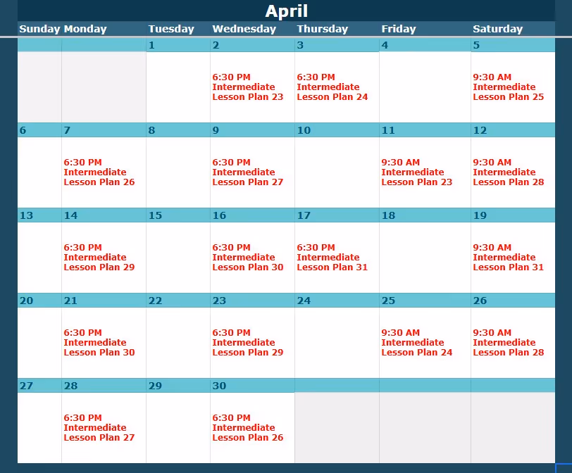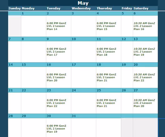 Look up the class level and date here, then view the corresponding lesson plan below.