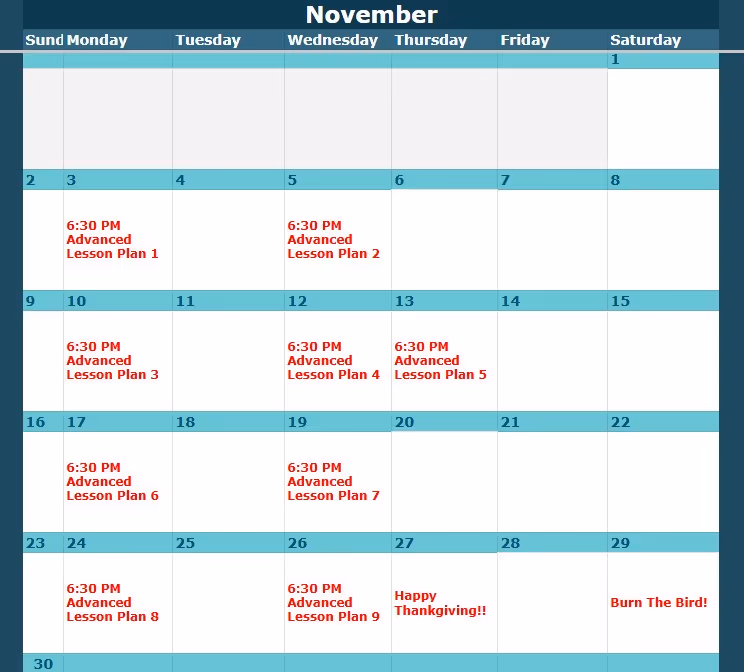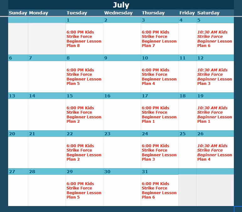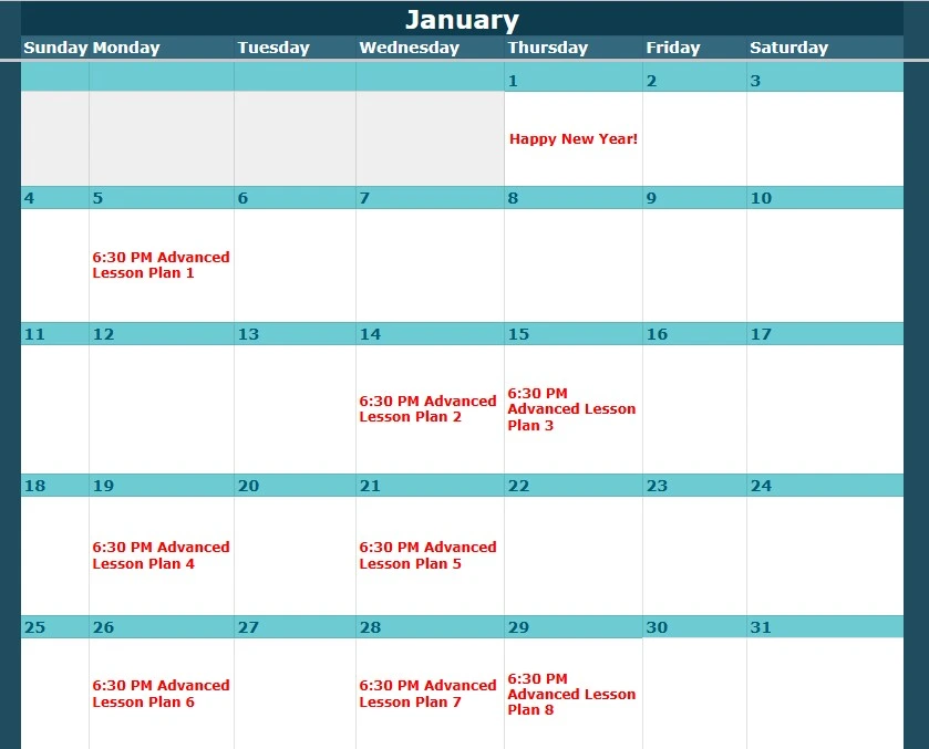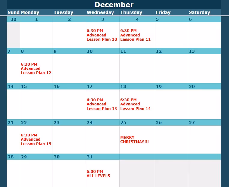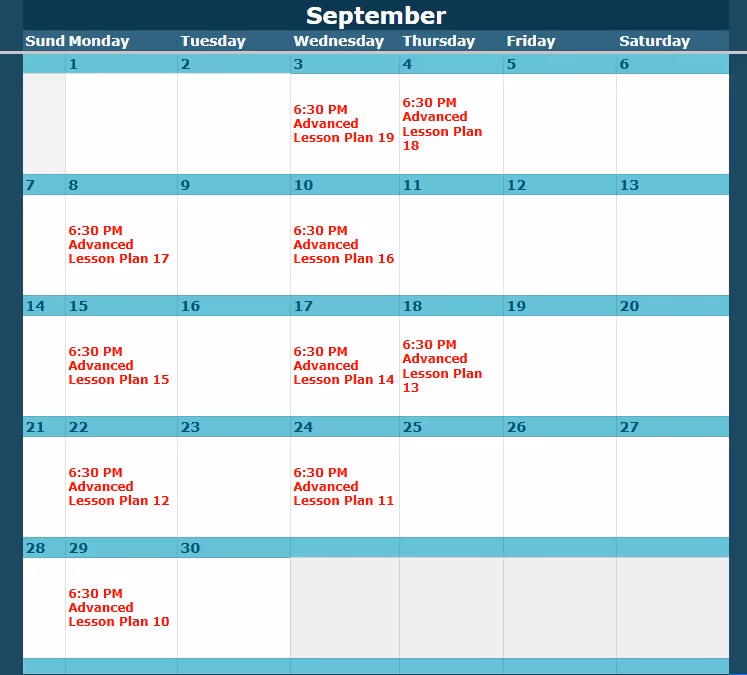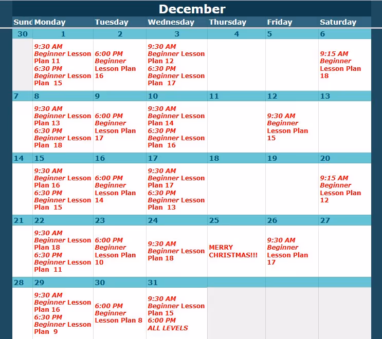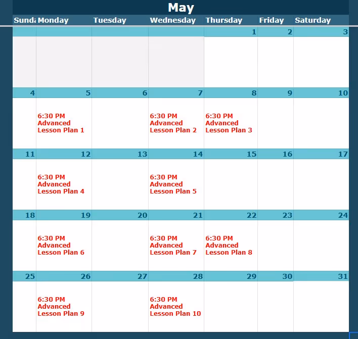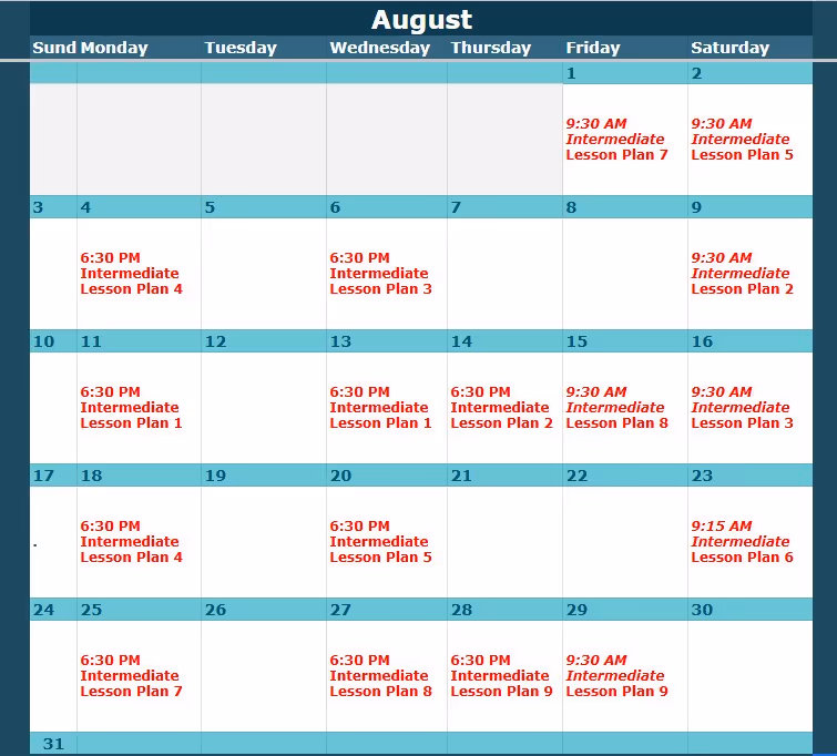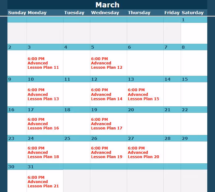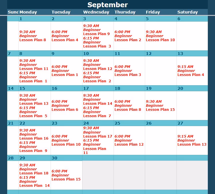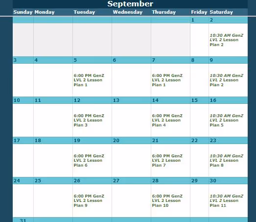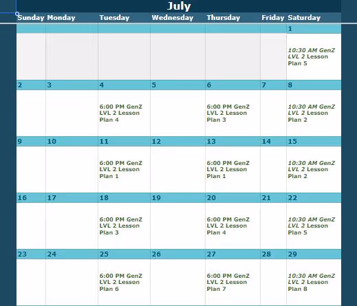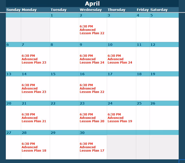 Look up the class level and date here, then view the corresponding lesson plan below.