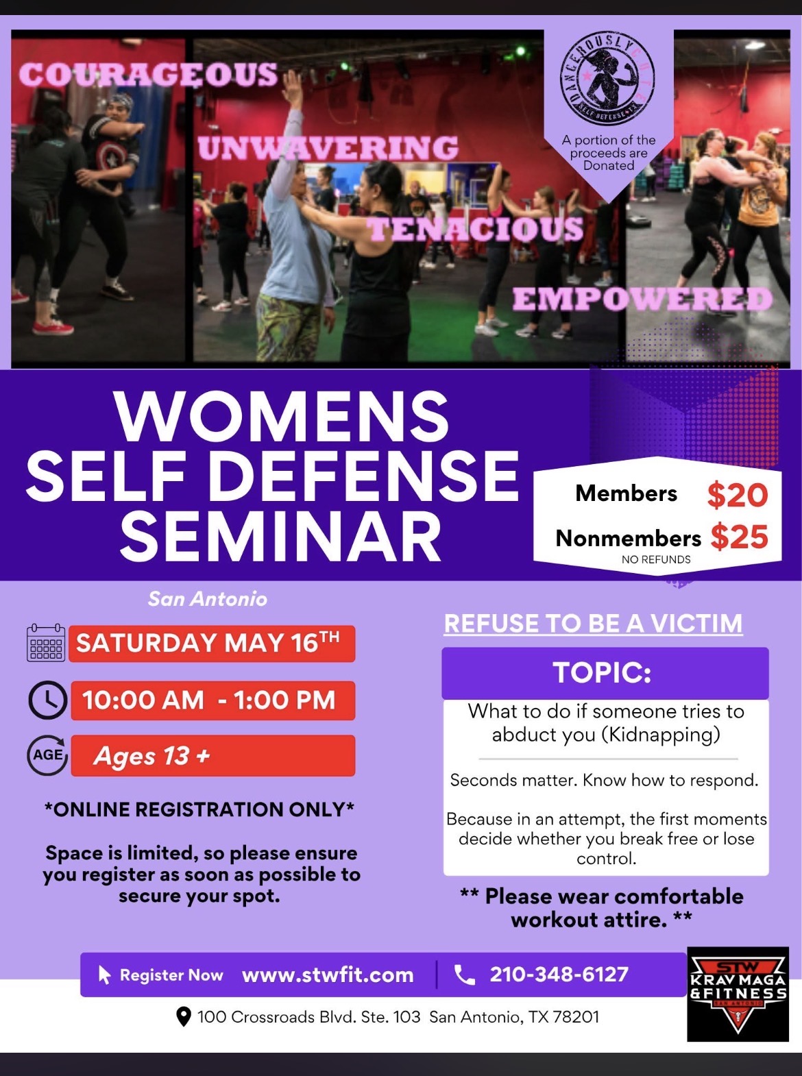 REGISTER HERE ------> https://securememberservices.com/v10/STW-SelfDefenseFitness/Member0/Event?CampaignId=277&cid=bcf18538-24a8-451e-83b5-1fa1e117382c